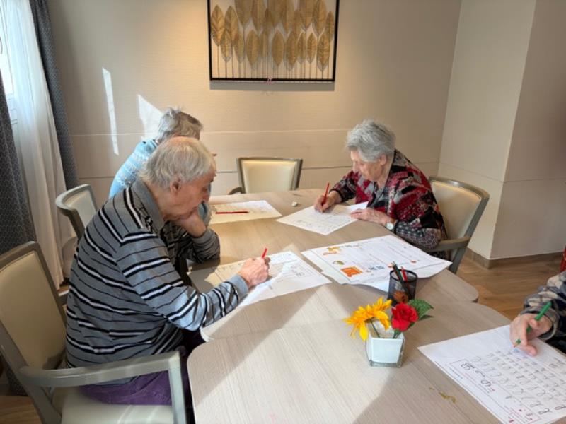 Pendant ce temps, un autre groupe de résidents participait à un atelier mémoire avec la psychologue, un moment stimulant qui a permis de faire travailler les neurones dans une ambiance conviviale.