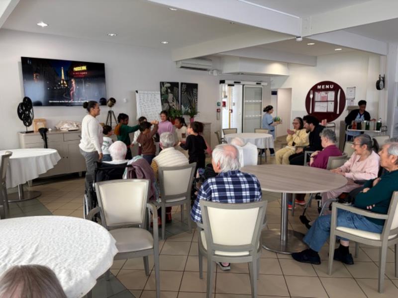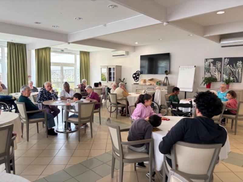 Cette semaine a été marquée par de très beaux moments de partage à la résidence. Hier, nous avons eu le plaisir d’accueillir des enfants qui sont venus jouer au loto avec les résidents. Ce moment intergénérationnel a été particulièrement touchant : les enfants prenaient le temps d’expliquer les numéros et d’aider les résidents, créant une ambiance chaleureuse et pleine de complicité. Les sourires étaient nombreux des deux côtés. Les enfants ont ensuite offert un petit moment de danse qui a apporté beaucoup de joie et de bonne humeur à tous.