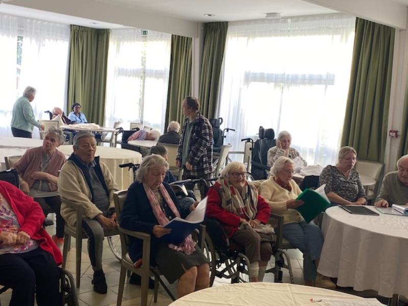 Cette semaine, la résidence a été rythmée par de jolis moments de partage. Mercredi, à l’occasion de l’arrivée de l’automne, nous avons décoré la résidence et l’après-midi : un atelier créatif qui a apporté de la couleur et de la gaieté. Les enfants du centre de loisirs Caillebotte sont venus participer, offrant aux résidents une rencontre intergénérationnelle pleine de sourires et de complicité. Jeudi, place au quiz de culture générale, qui a permis à chacun de faire travailler sa mémoire tout en s’amusant. Aujourd’hui, la semaine s’est clôturée par le temps fort attendu : la chorale. Résidents et familles se sont rassemblés nombreux, unis par le plaisir de chanter ensemble dans une ambiance chaleureuse et festive.