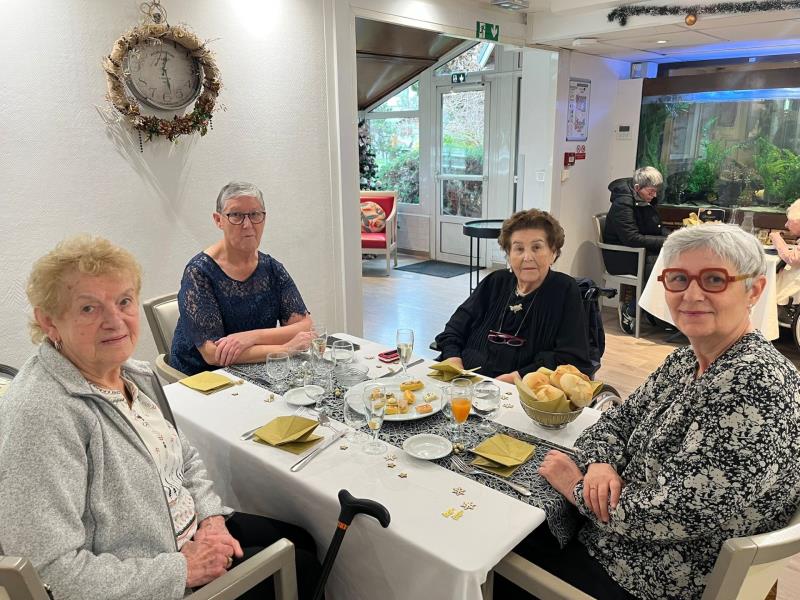 La décoration, le repas soigneusement présenté, les salariés élégamment apprêtés ainsi que la présence de certains de nos résidents accompagnés de leurs familles ont permis de partager un moment particulièrement agréable.