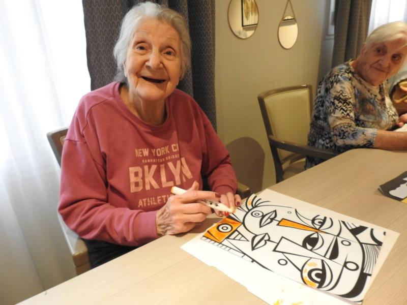 Nous avons commencé avec un bel atelier peinture animé par notre peintre Isabelle, Des Échanges dynamiques avec les résidents cet après-midi sur le caractère "moderne" et surprenant des œuvres produites., après un petit cours rapide en histoire de l'art sur le Cubisme et la réalisation de portraits déstructurés.