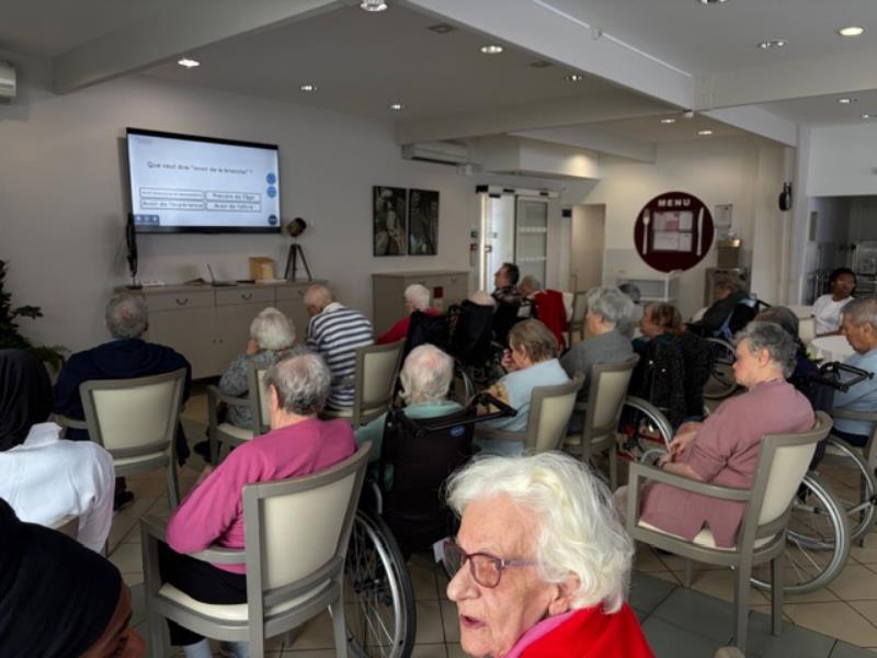 Mardi, nous avons réalisé un quiz de culture générale, très convivial, où les résidents ont beaucoup participé et partagé de nombreux moments de rires.Les échanges ont été riches et chacun a pu s’exprimer .