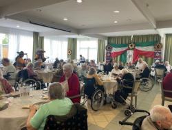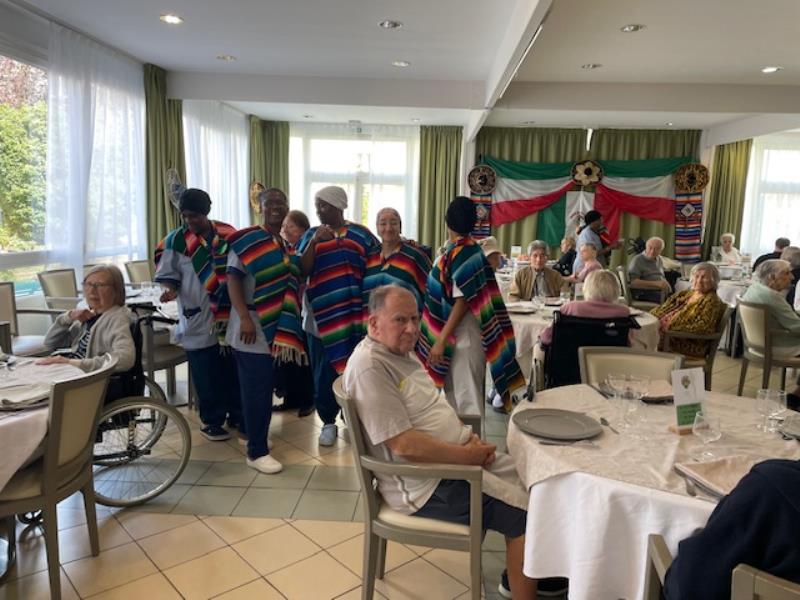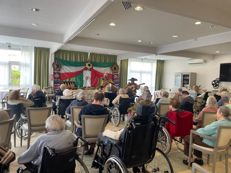 Toute la journée, la musique a résonné : les musiciens ont fait voyager nos résidents, qui ont pu toucher les instruments, vibrer au son des guitares et même partager un moment de spectacle. Nos collègues, vêtues aux couleurs festives, ont donné à la journée une chaleur particulière. Ce fut un véritable souffle d’exotisme et de joie, une fête qui a fait du bien à chacun.