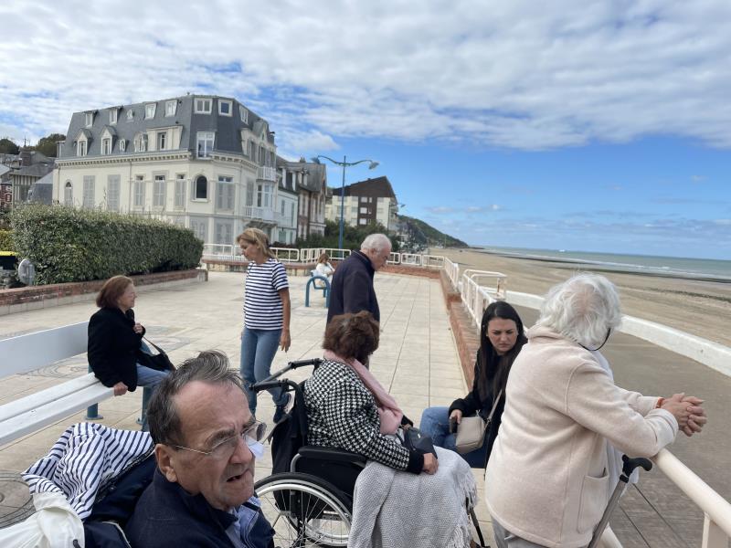 Mercredi, changement de décor : cap sur Villers-sur-Mer. Un déjeuner face à l’océan, au restaurant Mermoz, a offert un instant suspendu. Le soleil, la mer à perte de vue, la brise salée… Les résidents ont admiré longuement l’horizon, ramassé quelques coquillages comme de précieux souvenirs. Un moment simple et merveilleux, où le cœur se repose au rythme des vagues.
